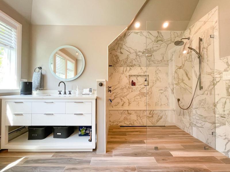 In case you haven’t noticed, there is no shortage of home design and decor products — in stores and online. Need a little help picking out products and finishes? Our in-house architectural designer can help you with every design decision throughout the process. This includes meeting on-site at tile shops, countertop showrooms, plumbing supply stores, etc., and providing insight into which products would work best in your space and with your budget.